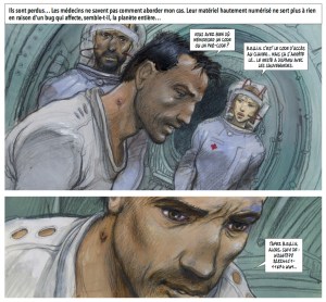La sortie d’un nouveau livre signé par Enki Bilal est toujours un événement. Depuis près de 40 ans, l’auteur et cinéaste français né à Belgrade, en ex-Yougoslavie, signe des bandes dessinées au ton et au graphisme uniques. Des BD sombres et crépusculaires (comme « La trilogie Nikopol » ou « Le sommeil du Monstre », par exemple), dans lesquelles il aborde les principaux thèmes qui l’obsèdent: la mémoire collective, la géopolitique, les rêves d’immortalité… Avec « Bug », Enki Bilal adopte un ton un peu plus léger et malicieux pour dénoncer les dangers de notre addiction digitale. Un thriller d’anticipation dans lequel il imagine les effets dévastateurs d’un immense black-out numérique. L’occasion pour lui de nous mettre en garde par rapport à notre dépendance de plus en plus grande à tout ce qui est numérique. Non sans dérision, d’ailleurs. Enki Bilal imagine notamment des citoyens obligés de se remettre à écrire des journaux sans recours au correcteur orthographique. Du coup, les articles sont bourrés de fautes! « Il va falloir revenir au papier, à l’encre et à la notion de mémoire. Pas vive, mais vivante, la mémoire. Celle de nos cerveaux », souligne un des personnages. « Parce que vous croyez qu’on saura encore s’en servir, de nos cerveaux? », lui répond un autre. Graphiquement, cela reste du Bilal pur jus, avec de magnifiques grandes cases dans lesquelles il imagine les villes du futur, en n’hésitant pas à placer une grande mosquée juste à côté de Notre-Dame à Paris. Il garde aussi sa passion pour le bleu: la tache qui grandit sur le visage de Kameron Obb a la même couleur que les cheveux de Jill Bioskop dans « La Femme piège ». Au niveau du scénario, par contre, Enki Bilal change légèrement son fusil d’épaule. Le rythme de ce premier tome de « Bug » est plus soutenu que celui de ses dernières BD, tandis que le ton est moins sombre. A 66 ans, Bilal a toujours la pêche!