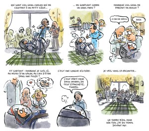 De novembre 2016 à juin 2017, l’astronaute français Thomas Pesquet a passé près de 200 jours à bord de la Station spatiale internationale (ISS). Doué pour les sciences mais aussi pour la communication, ce beau gosse de 38 ans a redonné le goût de l’espace à de nombreux jeunes (et moins jeunes) en postant de magnifiques photos et vidéos sur les réseaux sociaux et en parlant avec passion de sa mission spatiale. Ça, c’est pour la partie visible de l’iceberg (ou de la lune). La partie cachée, souvent nettement moins glamour, est racontée avec talent et humour par Marion Montaigne dans la BD « Dans la combi de Thomas Pesquet ». Car en réalité, avant de pouvoir réaliser son rêve de gosse, le jeune homme originaire de Normandie a dû réussir un incroyable parcours du combattant. Première étape: l’impitoyable sélection des candidats. A la base, plus de 8.400 personnes avaient répondu à l’appel à candidatures lancé par l’ESA, l’agence spatiale européenne, en 2008.  Mais à l’issue de tests scientifiques, psychologiques et physiques particulièrement éprouvants (voire sadiques parfois), seuls 6 d’entre eux ont finalement été retenus en mai 2009, parmi lesquels Thomas Pesquet. Deuxième étape: une très longue période de formation. Au total, l’astronaute français se sera entraîné pendant 7 ans, principalement au centre de la NASA à Houston et à la Cité des étoiles à Moscou, avant d’enfin être envoyé dans l’espace. Une formation très intense, qui n’a fait que renforcer la détermination de Thomas Pesquet, mais qui n’a pas toujours été facile à vivre pour lui, notamment parce que les 5 autres astronautes européens sont partis dans l’espace avant lui et qu’il a eu très peu l’occasion de voir sa famille durant cette période. Troisième étape: le départ de Baïkonour et l’arrivée dans l’ISS. Là aussi, Marion Montaigne nous raconte tout dans le moindre détail. Pas seulement les prestigieuses sorties dans l’espace, qui sont souvent les moments les plus médiatisés, mais aussi l’envers du décor et la vie quotidienne dans la station spatiale. Un reportage aussi drôle que passionnant… à mille lieues de « Gravity »!
