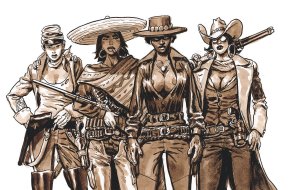 Pré-publiée par épisodes dans le magazine « Fluide Glacial », la BD « Mondo Reverso » s’appuie sur une excellente idée de départ. Faisant preuve d’un humour potache communicatif, Arnaud Le Gouëfflec et Dominique Bertail s’amusent comme des gamins à détourner les codes très marqués du western. « C’est un genre hyper sexué, donc j’étais assez curieux de voir ce qui pourrait se passer si on inversait les rôles », explique le scénariste. « Et je n’ai pas été déçu, parce que tout est sexué finalement, des fringues aux rôles qu’on nous attribue, les métiers, les attitudes. » Effectivement, c’est très drôle de découvrir à quel point le récit imaginé par Le Gouëfflec renverse les clichés et les idées reçues, en se moquant gentiment des stéréotypes machistes véhiculés par le western. Mention spéciale aux dialogues, qui sont particulièrement réussis parce que l’auteur s’applique à mettre tous les termes masculins au féminin et vice versa. Un clin d’oeil amusant au récent débat sur l’écriture inclusive. Malheureusement, au-delà de cette bonne idée de départ, l’histoire en elle-même peine parfois à convaincre. On ne peut pas s’empêcher de penser qu’il y avait sans doute moyen de faire mieux avec un tel matériau de base. D’autant plus que les dessins en sépia de Dominique Bertail, réalisés avec du brou de noix (« c’est facile à utiliser et ça ne coûte rien », dit-il), sont vraiment magnifiques. Autrement dit, ce premier épisode de « Mondo Reverso » vaut clairement la peine d’être lu, ne fût-ce que par curiosité, mais on compte sur Le Gouëfflec et Bertail pour transformer définitivement l’essai dans leur album suivant. Cela tombe bien: ils y travaillent déjà. Selon eux, ils sont loin d’avoir fait le tour du sujet!