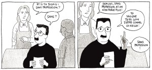 Sorj Chalandon: De mon côté, j’avais contacté Futuropolis non pas spécialement pour « Profession du père » mais parce que je voulais lancer un projet BD. Mon roman « Le quatrième mur » était en cours d’adaptation chez un autre éditeur à ce moment-là, mais il y avait eu un malentendu. J’avais signalé à l’éditeur que je ne souhaitais pas intervenir dans le travail d’adaptation afin de laisser toute la liberté nécessaire à l’auteur, mais lui a compris que je ne souhaitais pas être dérangé. Or, ne pas intervenir et ne pas être dérangé, ce n’est pas tout à fait la même chose! Je veux qu’on me dérange pour me demander: Lyon, c’est comment? Beyrouth, c’est comment? Belfast, c’est comment?