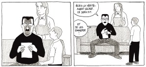 Sorj Chalandon: Parce que j’aime bien la BD. J’aime l’idée qu’on puisse voir les mots et qu’ils se transforment en personnages. C’est aussi quelque chose qui me soulage. Le papa dans la version BD de « Profession du père », c’est en même temps totalement le mien, à cause de tout ce qu’il fait et tout ce qu’il est, et en même temps, c’est aussi le papa d’Emile tel qu’il est vu par Sébastien. Du coup, quand je le lis, je ne me dis pas « pauvre Sorj » mais je me dis « pauvre Emile ». Je trouve ça formidable.