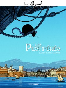 Cela fait plusieurs années maintenant que les éditions Grand Angle publient des versions BD des livres de Marcel Pagnol, de « La gloire de mon père » à « Jean de Florette » en passant par « Topaze » ou « Le Schpountz ». « Les pestiférés » se présente comme un cas à part dans cette collection, puisqu’il s’agit d’un récit relativement méconnu de Marcel Pagnol. Il s’agit, en effet, d’une oeuvre posthume qui n’a jamais été publiée dans son intégralité et qui n’a d’ailleurs pas été achevée par l’auteur marseillais. Certes, une partie de ce récit a été publiée dans le chapitre 9 du « Temps des amours », la quatrième partie des souvenirs d’enfance de Pagnol, mais celui-ci rêvait de donner une ampleur supplémentaire à cet épisode tragique de l’histoire de Marseille. Il avait d’ailleurs en tête une autre fin pour son récit. Cette fin, il l’a racontée à son épouse et à son fils. C’est donc grâce à l’aide de Nicolas Pagnol, le petit-fils de l’auteur, que les scénaristes Serge Scotto et Eric Stoffel ont pu, pour la première fois, mettre sur papier la version complète des « Pestiférés ». La dernière partie, inédite jusqu’ici, donne au récit de Pagnol un ton beaucoup plus dramatique et plus politique. Elle lui donne aussi une fin un peu abrupte, il faut bien le reconnaître. Mais cela n’empêche pas cette adaptation BD d’être particulièrement réussie, grâce notamment aux dessins simples mais efficaces de Samuel Wambre. « Les pestiférés » apparaît comme une lecture indispensable pour tous les amateurs de Marcel Pagnol, car elle permet de retrouver les éléments qui ont fait le succès de l’auteur marseillais, tout en révélant une autre facette de son talent. D’un côté, on retrouve ainsi toute la truculence et toute l’humanité de Pagnol, qui transpire à travers chacun de ses personnages, même dans un épisode aussi noir que cette épidémie de peste. Et d’un autre côté, on découvre de manière très concrète et très vivante les ravages de la peste, faisant ainsi de ce livre un témoignage historique particulièrement intéressant. Il faudrait donc être fada pour passer à côté de cette BD.