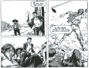 « Muertos » est l’une des premières claques de ce début d’année 2020. Cette brique de 150 pages en noir et blanc est un récit véritablement étouffant, mené à un rythme infernal par Pierre Place. L’auteur français, qui avait déjà utilisé l’imagerie mexicaine dans sa BD « Zapatistas », laisse très peu de répit à ses personnages. Après une brève introduction pour présenter les principaux protagonistes (les bourgeois, les contremaîtres, les bonnes), « Muertos » passe immédiatement à la vitesse supérieure pour ne plus jamais ralentir. Pierre Place parvient à accrocher le lecteur grâce à un découpage très cinématographique et des dessins expressionnistes. Certes, l’auteur prend parfois le temps de représenter certains décors de manière plus détaillée, mais il ne perd jamais de vue le rythme pour autant, certaines de ses planches se passant même du moindre dialogue pour donner encore plus de dynamisme au récit. Pour le dire simplement, il y a un suspense insoutenable dans cette BD: on se demande en permanence si Luz, Pancho et les autres personnages du récit vont parvenir à échapper à la horde grandissante de morts-vivants. Forcément, on se croirait dans une sorte de « Walking Dead » transposé dans le Mexique du début du 20ème siècle. Mais « Muertos » va au-delà du simple divertissement, c’est aussi une critique sociale. A l’image des films de George Romero, le réalisateur de « La nuit des morts-vivants », Pierre Place profite de son récit macabre pour dénoncer les discriminations entre les bourgeois et les « péons », le nom donné aux paysans mexicains. Raison de plus pour oser jeter un oeil à ce roman graphique délicieusement macabre.