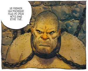 C’est ce qu’on appelle un roman de formation. On est dans une structure assez classique, avec un héros qui voyage, un maître, un mauvais compagnon, un adversaire. Les personnages qu’Aldobrando croise sur sa route sont tous des archétypes. Du point de vue philosophique, j’aime beaucoup la scène qui se déroule dans la Fosse. Tous les personnages se retrouvent là de façon assez théâtrale et la scène dure 30 pages, mais finalement il ne se passe pas grand-chose. C’est intéressant parce qu’on s’attend à une grosse baston, mais en réalité ça ne se passe pas vraiment comme ça. A la place, tout le monde discute tout le temps. Je trouve ça à la fois comique et très efficace.