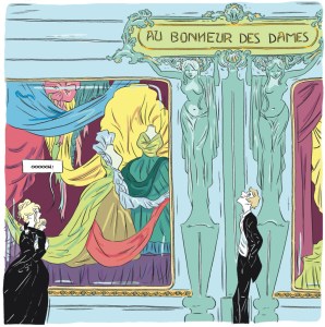 Au niveau graphique, vous vous êtes beaucoup documentée sur les grands magasins du dix-neuvième siècle et sur la mode de l’époque ou bien vous avez laissé libre cours à votre imagination?
