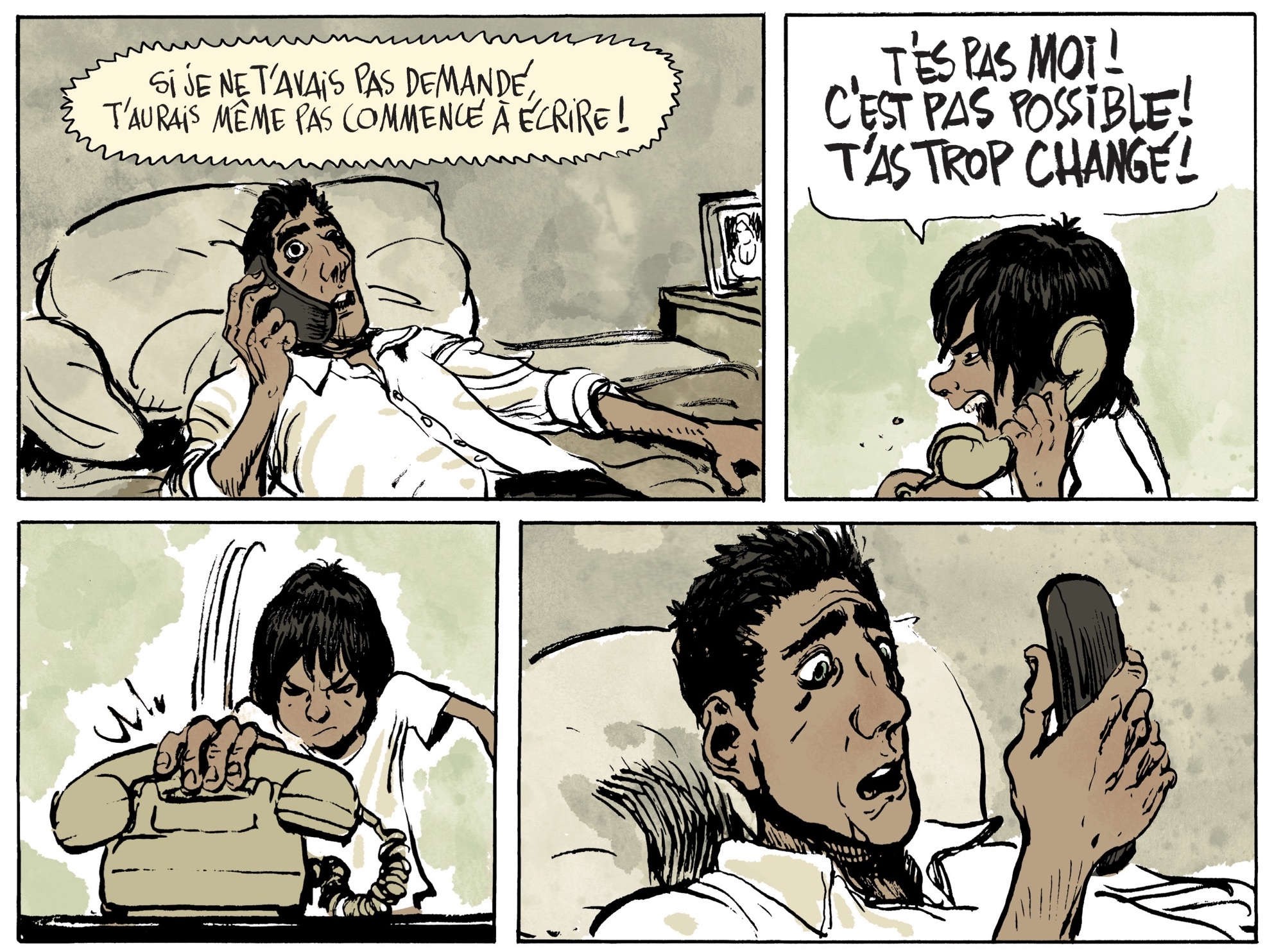 Comment avouer à l’enfant qu’on était qu’on n’a réalisé aucun de ses rêves? C’est la question principale posée par le roman graphique « Quelqu’un à qui parler », une formidable adaptation en bande dessinée d’un roman de Cyril Massarotto paru en 2017. Cette adaptation est l’œuvre de Grégory Panaccione, un auteur dont on avait découvert le talent de dessinateur il y a quelques années dans le génial récit muet « Un Océan d’amour », sur un scénario de Wilfrid Lupano. Dans « Quelqu’un à qui parler », Panaccione fait preuve du même brio et de la même réussite. Dès les premières pages de ce gros roman graphique de 250 pages, on est pris par le dynamisme de la mise en scène et des dialogues, qui alternent sans cesse entre humour et émotion. A plusieurs reprises, Grégory Panaccione – qui a travaillé un moment comme storyboarder dans l’univers du dessin animé – se passe une nouvelle fois des mots, l’album contenant quelques magnifiques scènes muettes. Mais la force de cette BD, c’est surtout la manière dont elle parvient à s’appuyer sur le personnage de « loser » de Samuel pour raconter une histoire qui peut tous nous parler, en particulier ceux qui ont dépassé la trentaine. « Quelqu’un à qui parler » s’adresse plus précisément à toutes les personnes qui ont l’impression d’avoir renoncé à leurs rêves d’enfance, en prouvant qu’il n’est jamais trop tard pour reprendre son destin en main… à condition de savoir écouter son enfant intérieur. Cette idée développée par Cyril Massarotto a forcément parlé à Grégory Panaccione puisque lui-même a toujours eu en tête de devenir auteur de bande dessinée, mais il a attendu très longtemps avant d’enfin publier ses premières planches. « Depuis l’âge de quatre ou cinq ans, je rêvais d’être dessinateur de BD », raconte-t-il. « J’ai d’abord travaillé dans la publicité, puis dans l’animation et je me sentais frustré de ne pas faire ce que je désirais depuis toujours. Un jour, en 2011, j’ai franchi le pas. J’avais quarante-deux ans, c’était un changement tardif mais qui a été très important pour moi. » On comprend mieux, du coup, l’enthousiasme et l’optimisme qui se dégagent de cette bande dessinée, qui est à coup sûr l’une des plus belles sorties de ce mois de septembre.