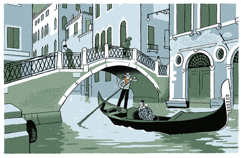 Un écrivain installé tous les jours à la terrasse du même café pour y rédiger des romans à l’eau de rose, qui racontent l’histoire d’une jeune femme dont le riche fiancé est sauvagement assassiné durant leur nuit de noces. Un homme et une femme faits l’un pour l’autre, qui font l’amour tous les jours, mais qui se séparent pendant des années lorsqu’elle le trompe avec un autre, afin que lui trouve à son tour une autre avec qui la tromper, histoire qu’ils soient quittes. Une dame élégante venue fêter ses 20 ans de mariage à Venise, mais dont le mari a raté son train et qui est séduite par le beau gondolier qui la balade sur les canaux de la ville en chantant du Chuck Berry. Donatella qui, à quarante ans passés, n’a jamais connu l’amour et qui rêve de la bouche d’un homme cueillant sur ses lèvres un « oui » fiévreux ou de la main d’un homme découvrant, éblouie, l’infinie douceur de ses seins. Un rémouleur ambulant qui retrouve l’impudique Oriana dans sa chambre chaque dimanche matin pour sa bonne action hebdomadaire, pendant que tous les autres habitants du village de Santo Desiderio sont à la messe…. Dans « Amore », il y en a pour tous les goûts et tous les âges. Cette bande dessinée, qui sent bon l’Italie des années 50 et 60, est composée de neuf courtes histoires mettant en scène des personnages et des lieux différents, mais avec deux fils rouges très clairs: l’amour et l’Italie. Chacun de ces petits récits possède son propre univers, de même que ses propres couleurs, afin de bien souligner la palette d’émotions et de situations amoureuses vécues par les différents personnages: la tendresse, la passion, la jalousie, la colère… Certains récits sont solaires, d’autres beaucoup plus sombres. Certains récits font sourire, d’autres font pleurer. C’est là toute la force des mots de Zidrou et des dessins de David Merveille qui, en quelques pages ou parfois même quelques cases, parviennent à raconter toute une vie.