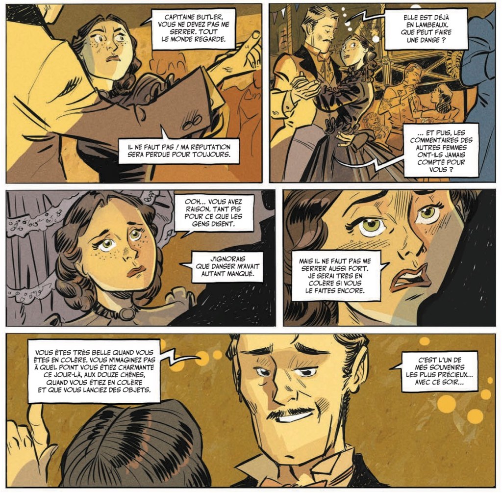 C’est ce qu’on appelle un retour inattendu. Plus de 80 ans après la sortie du mythique film « Autant en emporte le vent », qui restera à jamais l’un des plus gros succès de l’histoire du cinéma, le duo de légende formé par Scarlett O’Hara et Rhett Butler brille à nouveau de mille feux. Pour la toute première fois, leur histoire d’amour tumultueuse sur fond de guerre de Sécession fait l’objet d’une adaptation en bande dessinée, dont le premier des deux tomes vient de paraître aux éditions Rue de Sèvres. Le pari est osé puisqu’on sait que depuis quelques années, le film « Autant en emporte le vent » fait l’objet de nombreuses critiques et controverses. Aux Etats-Unis, des défenseurs des droits des Afro-américains accusent le film de Victor Fleming de faire l’apologie du racisme et de la ségrégation raciale. Ces critiques n’ont pas fait peur à Pierre Alary, l’auteur de cette adaptation BD, qui s’est appuyé davantage sur le roman que sur le film pour nourrir son scénario. On ne le sait pas forcément mais le film, qui est sorti en 1939, s’appuie en effet sur le livre du même nom de Margaret Mitchell, paru trois ans plus tôt, en 1936. Pierre Alary a un vrai don pour adapter des romans en bande dessinée puisque c’est déjà lui qui avait signé les adaptations très réussies de « Mon traître » et « Retour à Killybegs », deux romans de l’écrivain français Sorj Chalandon. La force de sa version de « Gone with the wind » (s’il a dû utiliser le titre original en anglais, c’est parce que le titre « Autant en emporte le vent » appartient aux éditions Gallimard) est de laisser de côté la polémique pour se concentrer sur ce qui fait tout le sel de cette histoire, à savoir ses deux personnages principaux. Scarlett et Rhett sont certes des personnages opportunistes et arrogants, qui tapent souvent sur les nerfs des lecteurs, mais dans le même temps, ils sont également libres et courageux. C’est ce qui les rend particulièrement intéressants et humains, car ils ne sont ni tout à fait bons ni tout à fait mauvais. Au contraire, ils portent en eux toutes les contradictions de l’être humain. Alors qu’autour d’eux, le vieux Sud est en train de s’écrouler, Scarlett et Rhett représentent en quelque sorte le passage à un nouveau monde. En lisant cette adaptation graphique pleine de souffle, on découvre surtout à quel point Scarlett est un personnage féminin magnifique, aussi attachante que détestable. Au début du récit, elle est une gamine pourrie gâtée et colérique, mais au fil des pages, elle révèle un tout autre visage lorsque sa vie se retrouve bouleversée par la guerre de Sécession. Certes, elle perd progressivement ses acquis et sa fortune, mais elle ne baisse jamais les bras et fait preuve d’une force insoupçonnée pour s’en sortir dans un monde en pleine déliquescence. Pleine de souffle, y compris au niveau graphique, cette version BD de « Gone with the wind » est donc l’une des toutes bonnes surprises de ce printemps. Quelle riche idée que de redonner vie à Scarlett et Rhett!