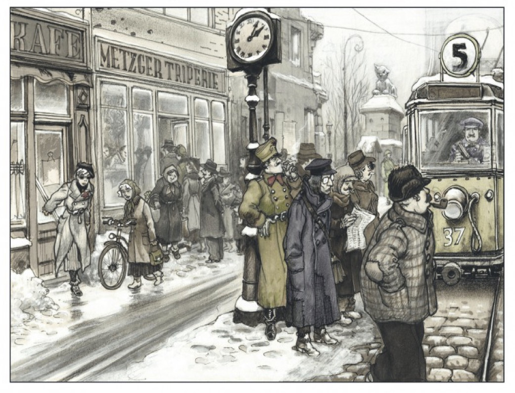 C’est sans doute lié au fait qu’à Budapest, il y a aussi des trams, alors qu’à Paris, ça n’existe pas. Les trams hongrois de l’époque ressemblent d’ailleurs très fortement aux trams belges. Si on ajoute à ça les ponts des pays de l’Est, les maisons, l’architecture, cela donne un décor qui n’est pas haussmannien du tout. On est dans quelque chose de beaucoup plus germanique. En marchant dans les rues de Budapest, qui ont un côté très propre, je me suis dit qu’elles colleraient parfaitement à l’ambiance de dictature décrite par le roman. J’y ai puisé énormément de choses. Cela m’a permis de rentrer dans l’univers Simenon par petites touches, en essayant de recomposer un décor que le romancier ne décrit pas. Quand il écrit par exemple que le personnage rentre dans la cuisine, il ne décrit rien de la cuisine. On sait juste que c’est une cuisine. Du coup, quand il s’agit de la dessiner, c’est forcément plus compliqué. En même temps, c’est très important de ne pas se tromper, parce que ce sont ces petites touches qui donnent son ambiance au récit.