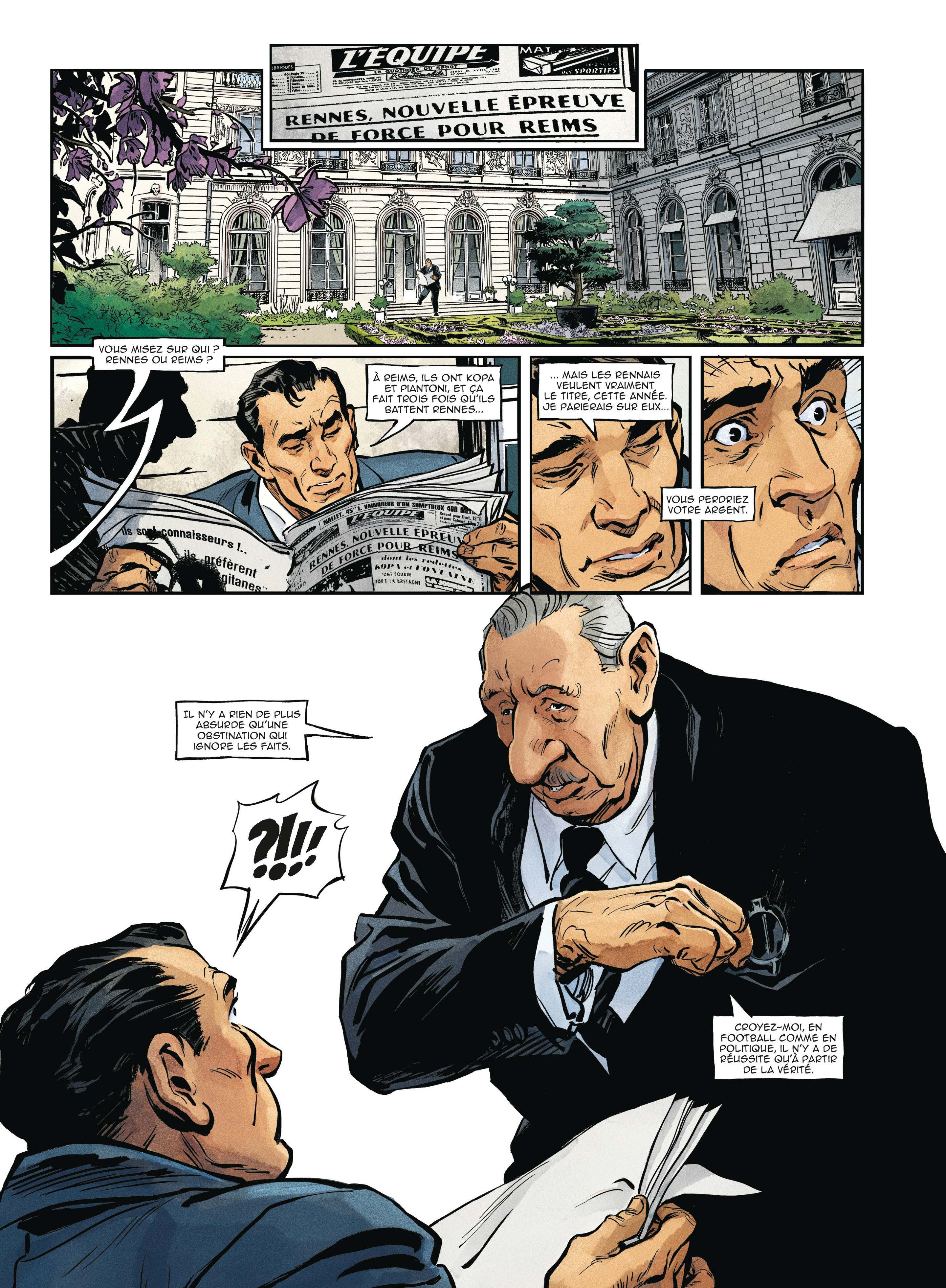 La BD « Les gorilles du Général » est-elle une histoire vraie? Oui et non. Cette nouvelle série repose sur des éléments et des personnages tout à fait véridiques, comme on le découvre dans les pages documentaires à la fin de l’album, mais la force des auteurs est de s’appuyer sur cette réalité pour construire un récit de fiction. Le scénario de Xavier Dorison s’offre en effet quelques libertés avec l’Histoire (avec un grand H) pour raconter avant tout une bonne histoire (avec un petit h). Une histoire trépidante, faite de trahisons et d’espoirs, de grandeurs et de déceptions, de victoires et d’échecs. Au-delà des questions politiques, cette bande dessinée se focalise avant tout sur le quotidien de ces quatre hommes hors du commun, dévoués corps et âme au Général, au point d’y sacrifier leur famille et leurs amis. C’est en mettant en avant leurs doutes et leurs failles que le récit devient plus humain et plus passionnant. L’un des éléments les plus réussis dans cet album, c’est la reconstitution de l’ambiance des années 50, avec des personnages à la Lino Ventura et des dialogues qui s’inspirent de Michel Audiard, comme dans les films de cette époque. Le dessinateur Julien Telo, qui s’était fait connaître dans des albums complètement différents jusqu’ici (davantage dans le registre de l’heroic fantasy), a clairement réalisé un gros travail de documentation pour rendre son album le plus crédible possible. Ce qui n’empêche pas ses pages d’être pleines de dynamisme et d’action. Comme son titre l’indique, ce premier album couvre le mois de septembre 1959, mais on sait déjà qu’il y aura trois tomes au total, et que le prochain album nous emmènera en décembre 1959 à Colombey-les-Deux-Eglises.
