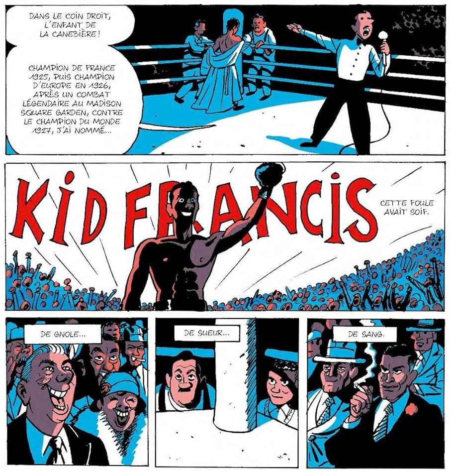 Le 10 juillet 1932, les arènes du Prado sont en ébullition. La foule est déchaînée. Bruyante comme jamais, elle a soif de sueur et de sang. Ce jour-là, des milliers de Marseillais sont venus assister à un choc de titans, un combat de boxe entre l’Américain Al Brown, champion du monde poids coqs, et Kid Francis, champion de France et champion d’Europe. Si la foule est surexcitée, c’est parce que le Kid en question est l’un des leurs. C’est un enfant de la Canebière, qui est né et a grandi dans le quartier de Saint-Jean, sur la rive nord du Vieux-Port de Marseille. Un quartier populaire, où se concentrent toutes les maisons closes de la ville, mais aussi des clubs de jazz, des cafés et des bars où débarquent des marins du monde entier. Autant dire que rien ne prédestinait le petit Francesco Buonagurio, né en 1906 dans ce quartier à la réputation sulfureuse, à connaître un jour la gloire sous le nom de Kid Francis, à devenir l’ami de Marcel Pagnol et Maurice Chevalier, à faire la fête à Hollywood avec des stars planétaires comme Charlie Chaplin et Joséphine Baker. C’est un vrai conte de fées puisqu’à la base, Francesco n’est qu’un simple cireur de chaussures sur le Vieux-Port. Un petit gars courageux mais miséreux, qui se fait régulièrement traiter de « fils de pute de macaroni », comme bon nombre d’immigrés italiens à l’époque. Mais à force de se défendre avec ses poings, le jeune Marseillais finit par se faire remarquer par un certain monsieur Pollak, un bijoutier dont il cire régulièrement les chaussures. Celui-ci le met en contact avec François Lisanti, un entraîneur de boxe qui va changer la vie du jeune Francesco en faisant de lui le redoutable Kid Francis. L’élève et le maître deviennent rapidement inséparables, le jeune boxeur se montrant d’une loyauté infaillible vis-à-vis de son mentor. Hélas, si Kid Francis se débrouille comme un champion sur le ring, il découvre au fil des ans qu’il est souvent plus difficile de rester debout dans la vie. Etonnamment, c’est surtout de sa propre famille que le jeune Marseillais va devoir se méfier. Car son oncle, le redoutable François Spirito, un gangster surnommé le « Capone français », voit dans son petit neveu une formidable opportunité de s’enrichir et de faire prospérer de nouveaux trafics…