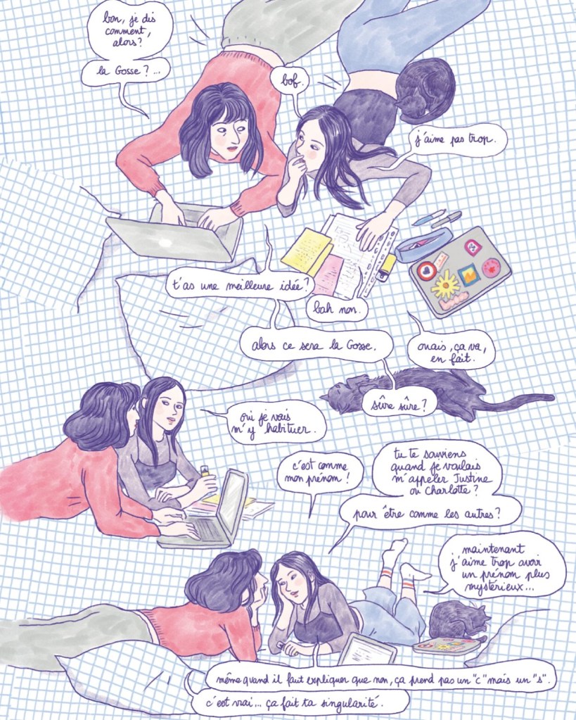 Evidemment, il y a la relation mère-fille. Mais j’aime aussi la manière de Nadia de regarder l’adolescence. C’est un thème qui traverse tout mon travail depuis mes débuts. Dans tous mes bouquins, il y a des personnages adolescents, parce que c’est vraiment la période de la vie que je préfère observer. Et puis j’ai aimé aussi l’humour et l’autodérision de Nadia Daam. L’album démarre sur un sujet très grave, mais malgré ça, elle arrive à mettre de l’humour un peu partout et à devenir une sorte d’observatrice de sa propre vie.