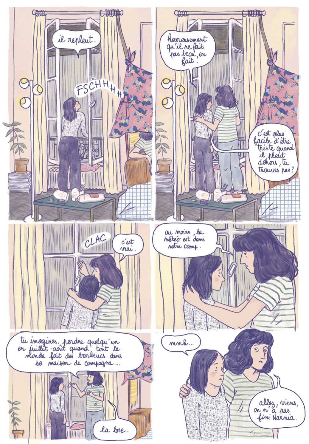 Evidemment, il y a la relation mère-fille. Mais j’aime aussi la manière de Nadia de regarder l’adolescence. C’est un thème qui traverse tout mon travail depuis mes débuts. Dans tous mes bouquins, il y a des personnages adolescents, parce que c’est vraiment la période de la vie que je préfère observer. Et puis j’ai aimé aussi l’humour et l’autodérision de Nadia Daam. L’album démarre sur un sujet très grave, mais malgré ça, elle arrive à mettre de l’humour un peu partout et à devenir une sorte d’observatrice de sa propre vie.